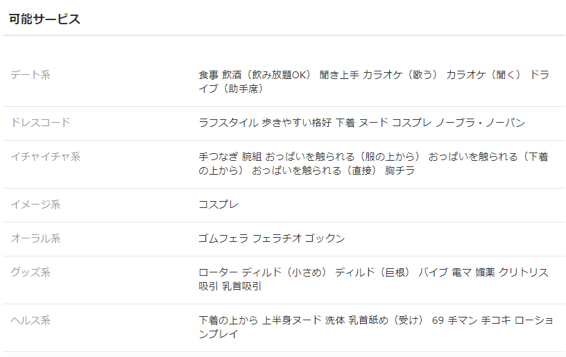 さらに、サンマルサンでは女の子ができるプレイやオプション、そして何より「料金」が明白に書かれている。