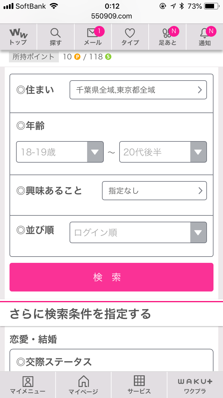 ワクメで使う機能は、基本的にプロフ検索だけでいい。